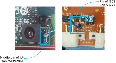 Using a wire, connect the middle pin of JU4 of the MAX9286 deserializer to the pin of J102 of the S32V.