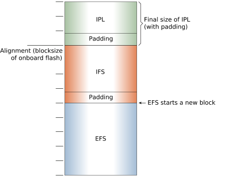 - Each section of your combined image (IPL, IFS (XIP), EFS (run in RAM) must begin at a memory