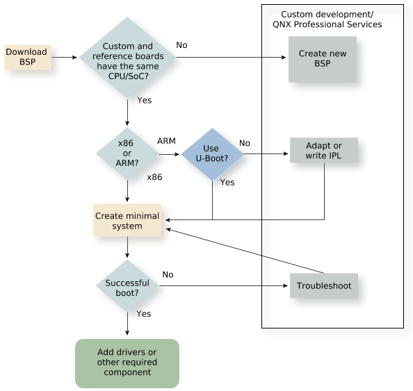 An alternative to developing custom BSP components yourself is QNX Professional Services, which is available to create custom BSP content, including drivers.