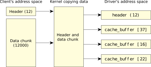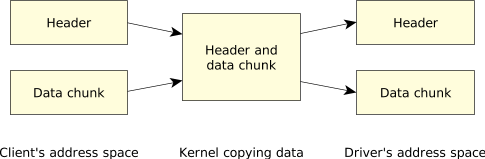 Since the kernel is going to copy the data anyway, it would be nice if we could tell it that one part of the data (the header) is located at a certain address, and that the other part (the data itself) is located somewhere else, without the need for us to manually assemble the buffers and to copy the data.