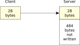 The kernel transfers the minimum specified by both sizes. In our case, the kernel would transfer 28 bytes. The server would be unblocked and display the client's message. The remaining 484 bytes (of the 512 byte buffer) will remain unaffected.