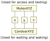 One interesting note. Since there is no checking, you can do things like associate one set of variables with mutex ABC, and another set of variables with mutex DEF, while associating both sets of variables with condvar ABCDEF: