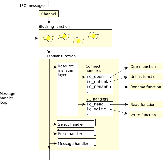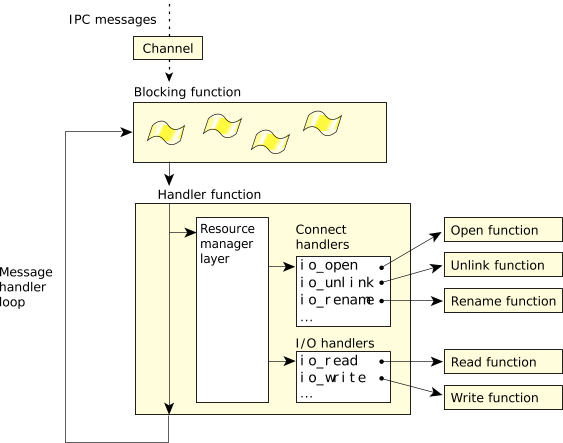This layer allows you to have a single- or multithreaded resource manager. This means that one thread can be handling a write() while another thread handles a read().