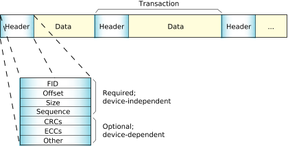 Each transaction consists of a header followed by data.
