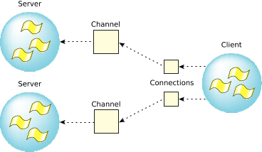 Channels are required by the message kernel calls and are used by servers to MsgReceive() messages on. Connections are created by client threads to connect to the channels made available by servers. Once connections are established, clients can MsgSend() messages over them. If a number of threads in a process all attach to the same channel, then the connections all map to the same kernel object for efficiency. Channels and connections are named within a process by a small integer identifier. Client connections map directly into file descriptors.