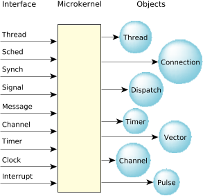 The microkernel implements the core POSIX features used in embedded realtime systems, along with the fundamental QNX Neutrino message-passing services.