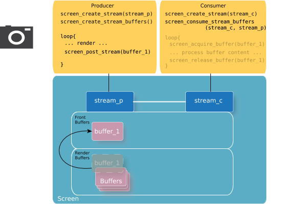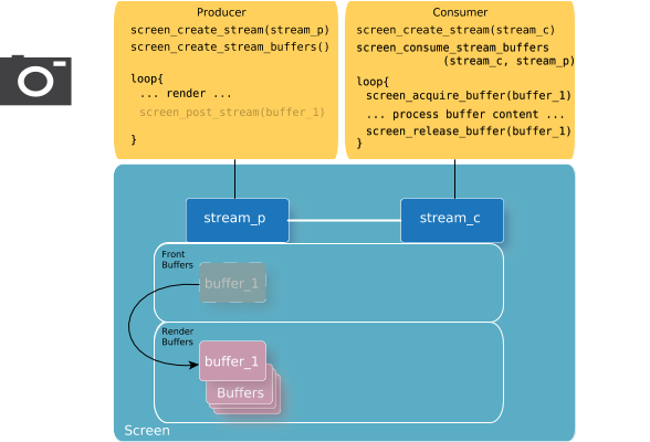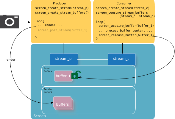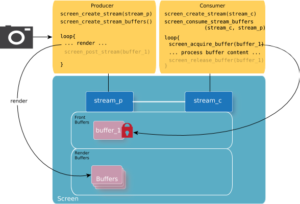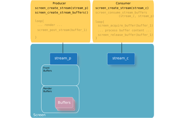 Using streams generally implies a basic set of procedures for both the producer and the consumer. Content can be accessed by multiple applications or processes, so it's important that each of the producers and consumers understand how to provide and access the content. The Screen API provides the capability to perform what each of the producer and consumer are responsible for.