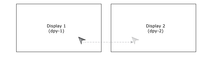 Let's say that you have two displays and you want to show your cursor on the first display. As the pointer device moves towards the right, you want the cursor to move and eventually be shown on the second display.