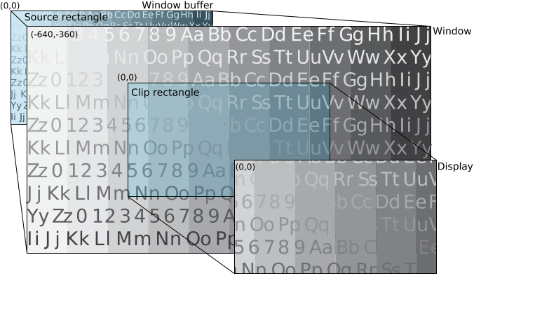 The clip rectangle is the same size as the display so that the result displayed is only the content from your window that's inside the clip rectangle. The resulting image gives the appearance of zooming in on your original source image.