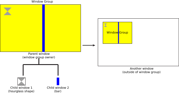 Window groups establish a hierarchy of windows that consists of a parent and at least one child window.