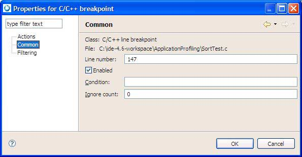 the C/C++ editor, right-click the breakpoint and select Breakpoint