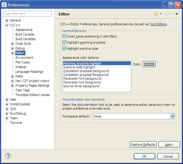 control many other visual aspects of the C/C++ editor