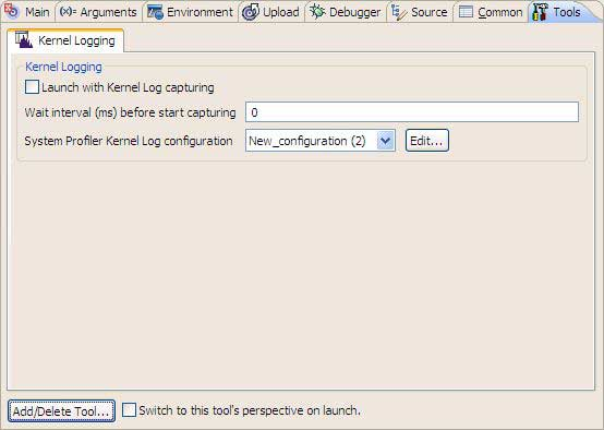The Tools tab lets you add runtime analysis tools to the launch. To do this, click the Add/Delete Tool button at the bottom of the tab: