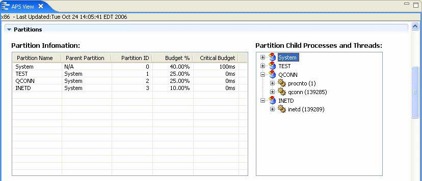 This view displays information about the adaptive partitioning scheduling (APS) on the target system.
