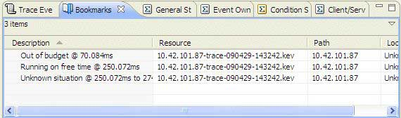 These bookmarks show up in the Bookmarks view and can represent a range of time or a single particular event instance.