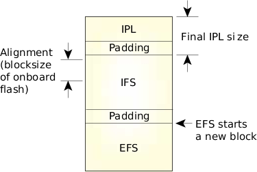 Padding separates the IPL, .ifs file, and .efs files in the combined image.