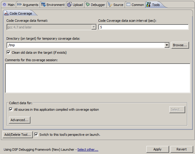 automatically switch to the QNX Code Coverage perspective when you launch the project.
