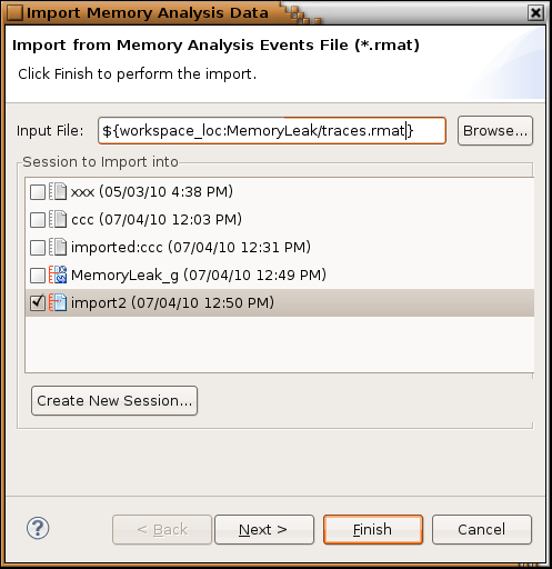 Importing Memory Analysis data is useful in two cases: If it isn't possible to start a Memory Analysis session using the