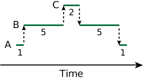 Here, A's real CPU usage would be considered as 2 units of time, B's as 10, and C's as 2. Because B and C are both acting as servers, they really execute only when there are clients generating requests for work. Most standard CPU Usage metrics don't take this type of "on-behalf" work into consideration. However, if the goal of a kernel log file investigation is to locate the sources of high CPU load, then this type of metric is quite helpful in assigning blame for high CPU usage.