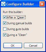 - Opens the Configure Builder dialog that lets you specify when to run the