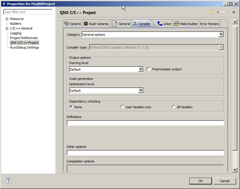 specify is a compiler type (automatically detected by the IDE), such as GCC 4.6. Note that selecting