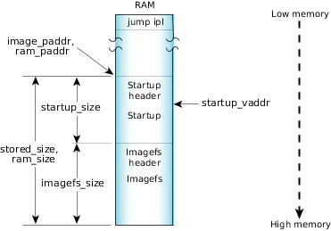 In this case our full IPL isn't involved. An existing BIOS IPL loads the image into memory and transfers control to our IPL. Since the existing IPL doesn't know where in startup to jump, it always jumps to the start of the image. On the front of the image we build a tiny IPL that jumps to startup_vaddr: