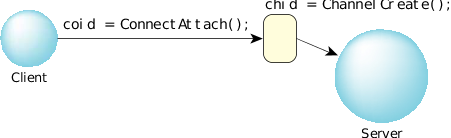 This implies that the server has to create a channel—this is the thing that the client connected to when it issued the ConnectAttach() function call. Once the channel has been created, the server usually leaves it up forever.