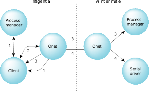 Figure 1. Message passing over a network. Notice that Qnet is divided into two sections.