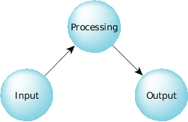 Figure 1. System 1: Multiple operations, multiple processes.This is the most highly abstracted form, and also the most "loosely coupled." The "input" process has no real "binding" with either of the "processing" or "output" processes—it's simply responsible for gathering input and somehow giving it to the next stage (the "processing" stage). We could say the same thing of the "processing" and "output" processes—they too have no real binding with each other. We are also assuming in this example that the communication path (i.e., the input-to-processing and the processing-to-output data flow) is accomplished over some connectioned protocol (e.g., pipes, POSIX message queues, native QNX Neutrino message passing—whatever).