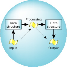 Figure 1. System 3: Multiple operations, multiple threads.Here we see one process with three threads. The three threads share the data areas implicitly. Also, the control information may be implemented as it was in the previous examples, or it may also be implemented via some of the thread synchronization primitives (we've seen mutexes, barriers, and semaphores; we'll see others in a short while).