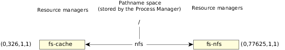 Notice here that the process manager returned two sets of ND/PID/CHID/handle; one for fs-cache and one for fs-nfs. This is critical.
