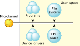 Figure 1. The microkernel architecture.This robust architecture ensures that crashing one program has little or no effect on other programs throughout the system. If a program faults, you can be sure that the error is restricted to that process's operation.