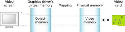 Figure 7. The shared library memory.Object memory represents the areas that map into a program's virtual memory space, but this memory may be associated with a physical device. For example, the graphics driver may map the video card's memory to an area of the program's address space: