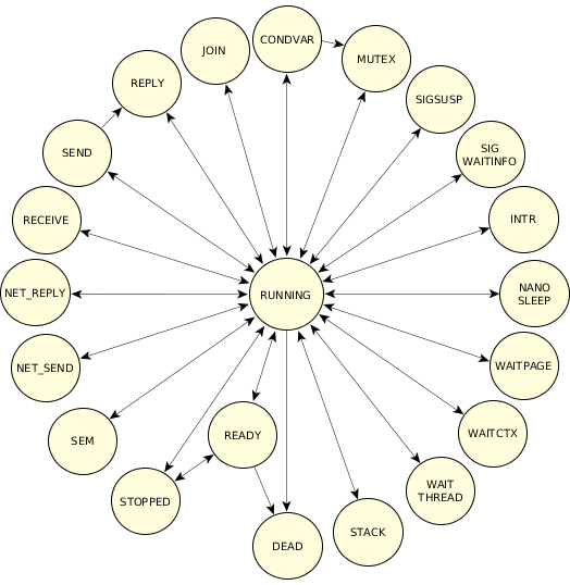 Figure 1. Possible thread states. Note that, in addition to the transitions