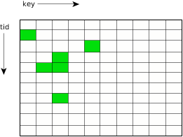 Figure 1. Sparse matrix (tid,key) to value mapping.You use the following functions to create and manipulate this data:
