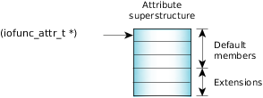 Figure 3. Encapsulating the default data structures used by resource managers.The library contains iofunc_*() default handlers for these client functions: