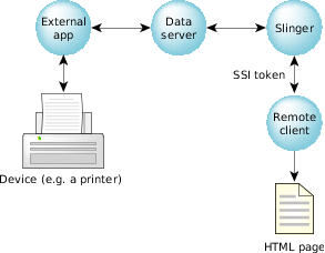 For example, you can write an application that monitors a printer and uses Slinger to update a remote client that displays the printer's status: