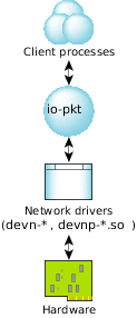 Figure 1. Components of TCP/IP in QNX Neutrino.To set configuration parameters, use the ifconfig and route utilities, as described below.
