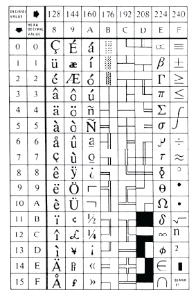 Figure 2. The PC character set 0x80-0xff.ANSI screen control codes