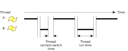 Threads don't switch instantaneously—after one thread blocks or yields to another, the kernel must save the settings before running another thread. The time to save this state and restore another is known as thread context-switch time. This context-switch time between threads is small, but important.