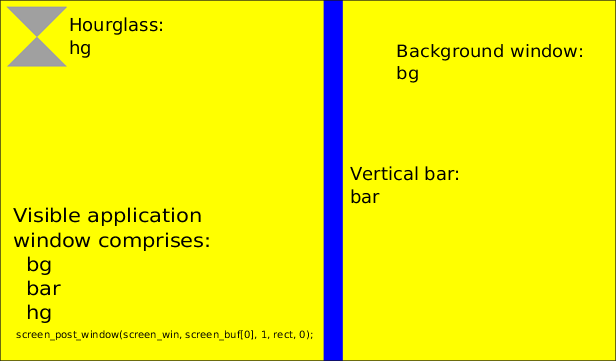 This section describes how you can create the familiar hourglass and bar example using pixmaps, buffers, and blits.