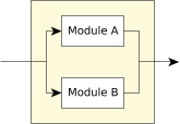 In terms of software, just what is a parallel flow? A parallel flow is one in which either module A or module B (in our example) can handle the work. This is accomplished by having a redundant server, and the ability to seamlessly use either server—whichever one happens to be available. The reason a parallel flow is more reliable is that a single fault is more likely to occur than a double fault.